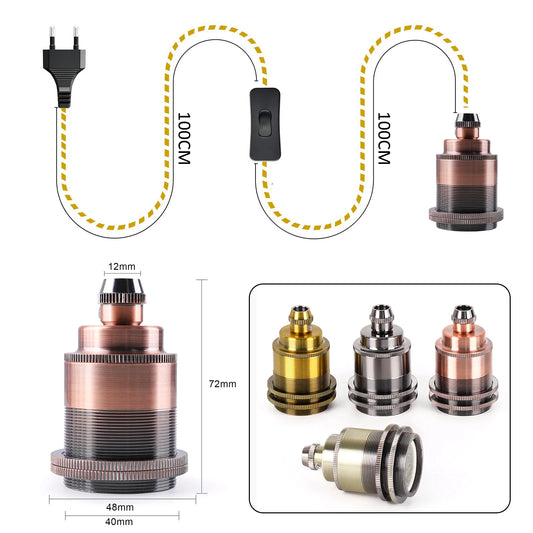 Vintage Pendant Light – 2M Hemp Hand Knitted Rope Cord with E26/E27 Socket & EU Plug